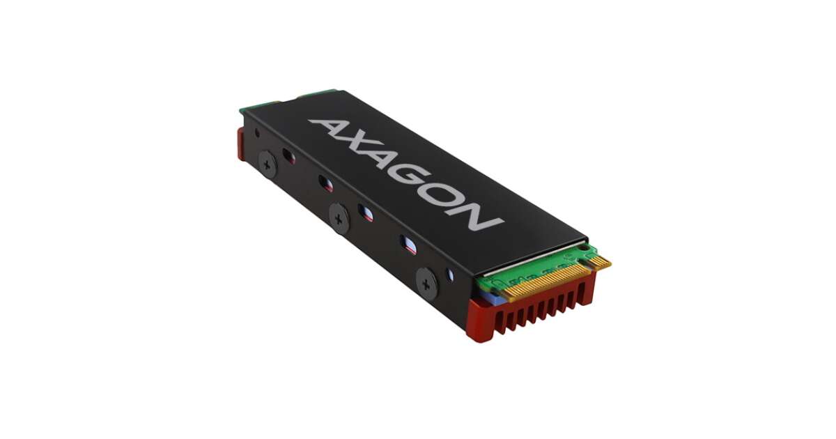 Axagon CLR-M2Pasywna aluminiowa chłodnica AXAGON CLR-M2 doskonale nadaje się do chłodzenia wydajnych dysków SSD M.2, szczególnie NVMe. Uniwersalny cooler pasywny można zastosować do kart M.2 o wymiarach 22 x 80 mm. Dostarczone podkładki termiczne umożliwiają montaż chłodnicy zarówno na jednostronnych, jak i dwustronnych dyskach SSD M.2.Dzięki całkowitej wysokości 12 mm i wysokości radiatora 8 mm, cooler może być używany w gniazdach, nad którymi znajduje się karta graficzna. Użebrowanie aluminiowe radiatora i metalowa rama optymalizują odprowadzanie ciepła z dysku SSD M.2, co może obniżyć temperaturę dysku nawet o 25 °C. Wydłuża to żywotność dysku SSD i zapobiega spowolnieniu prędkości dysku, zwanemu „Thermal Throttling“.Dzięki łatwemu montażowi i kompaktowym wymiarom, cooler może być używany nie tylko z adapterami M.2 AXAGON, ale także z gniazdami M.2 (NGFF) na płytach głównych itp. Metalowa rama chłodnicy odprowadza ciepło z obu stron dysku M.2, zapewniając maksymalną wydajność chłodzenia.Specyfikacja techniczna:Gwarancja producenta: 24 miesiąceKompatybilność: dyski M.2 o wymiarach 22 x 80 mm.Wymiary: 76 x 24 x 12 mmKolor: czarno-czerwonyMasa: 21 gZestaw zawiera: metalowa rama | trzy podkładki przewodzące ciepło | zestaw montażowy oraz śrubokręt