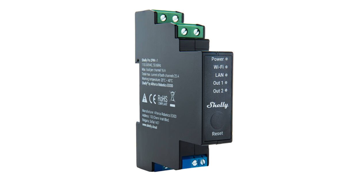 Ten montowany na szynie DIN inteligentny przekaźnik Shelly PRO 2PM to idealne rozwiązanie do inteligentnego sterowania Twoim domem lub firmą. Może sterować dwoma niezależnymi obwodami i posiada funkcję pomiaru zużycia energii, dzięki czemu możesz dokładnie monitorować zużycie energii.