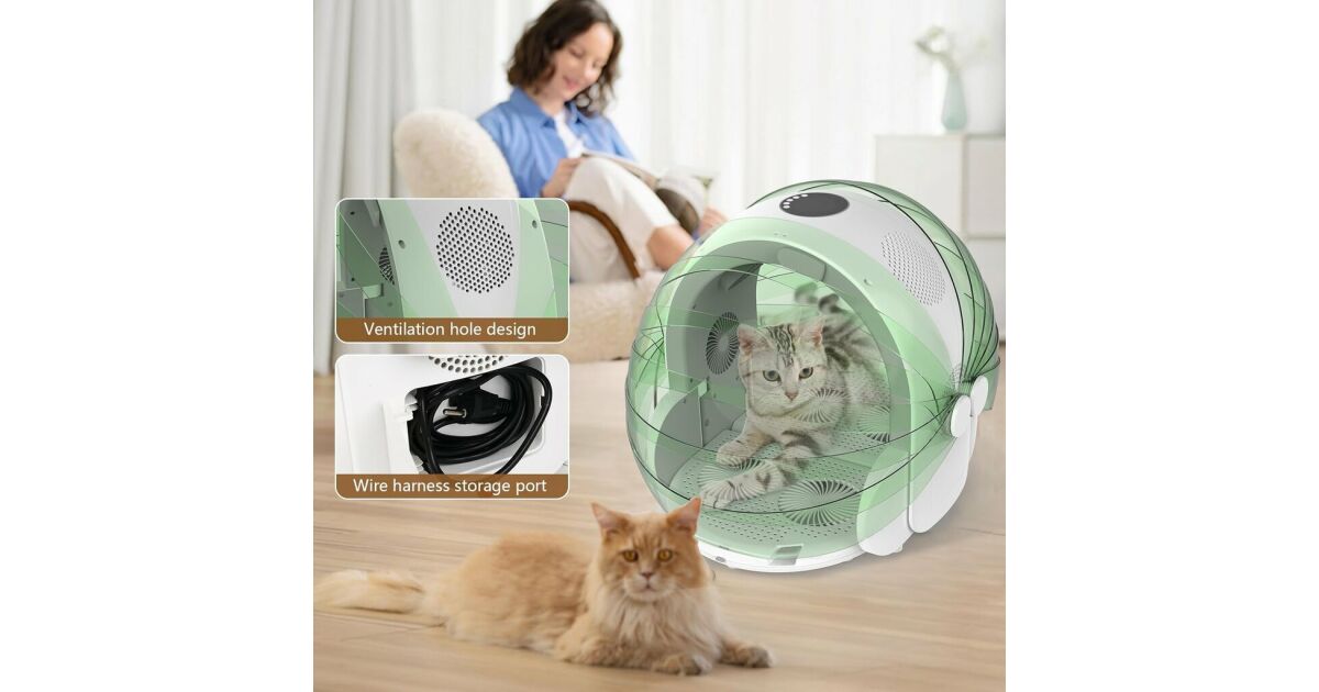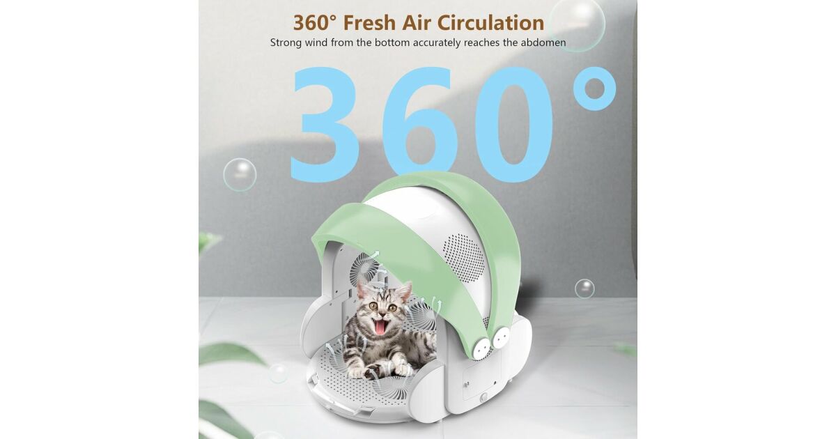 Ta inteligentna, składana suszarka dla zwierząt jest wyposażona w technologię jonów ujemnych, 8 wentylatorów o wysokiej prędkości oraz system cyrkulacji powietrza 360°, który zapewnia przepływ powietrza na całym ciele pupila, dzięki czemu proces suszenia jest bardziej komfortowy i bezpieczny dla oddychania. Suszarka pracuje z poziomem hałasu nieprzekraczającym 60 dB, eliminując stres, niepokój i lęk u zwierząt. Jest wyposażona w zabezpieczenie przed przegrzaniem oraz technologię utrzymującą stałą temperaturę, dzięki czemu sierść Twojego pupila jest miękka i lśniąca, a proces suszenia bezpieczny i komfortowy.