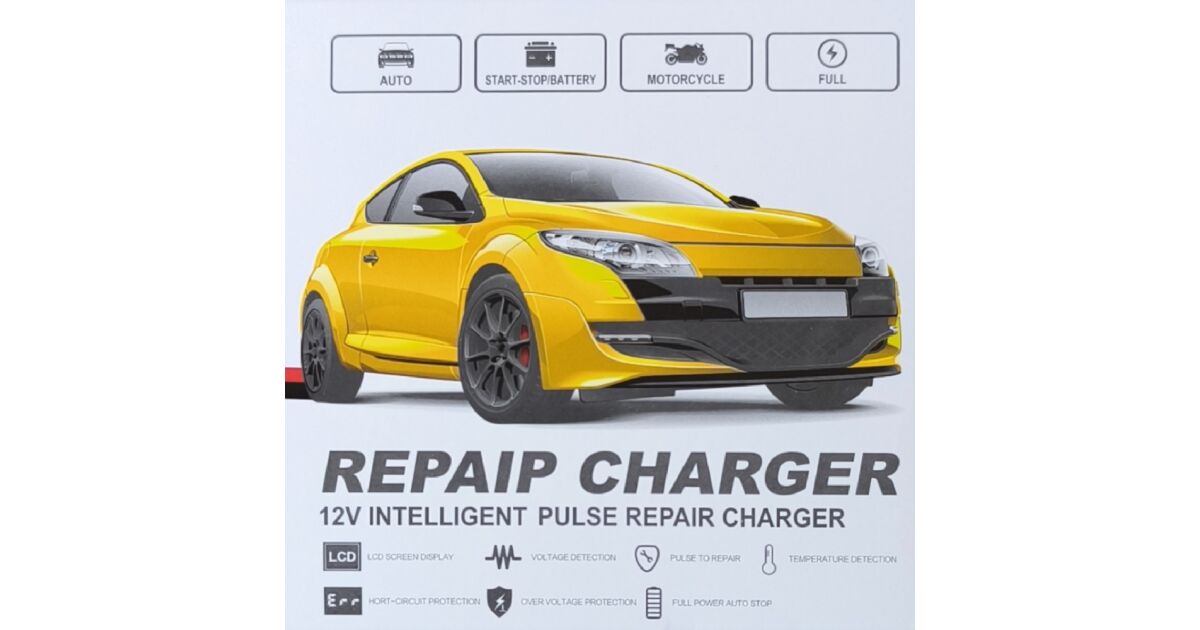 Inteligentny automatyczny prostownik do akumulatorów samochodowych 12V/5A, profesjonalny z funkcją naprawy i bezpieczeństwa, żółty i czerwony