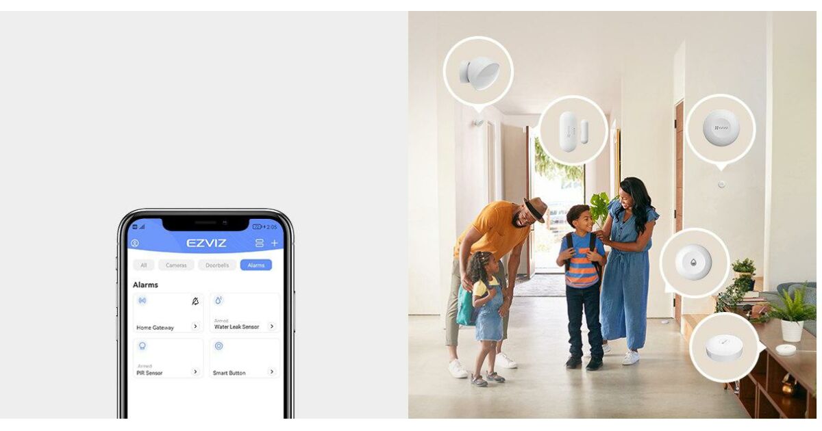 Ważne: Do korzystania z EZVIZ T10C wymagana jest bramka domowa EZVIZ A3 (brak w zestawie). Kompatybilny z kamerami EZVIZ.