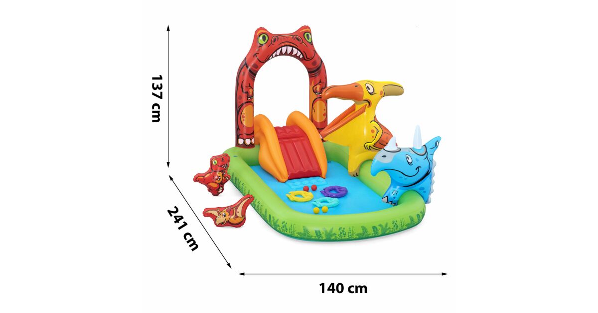 Ten dmuchany basenik Bestway zapewni niezapomniane chwile radości Twoim dzieciom w upalne letnie dni! Z wyjątkowym dinozaurzym designem, zjeżdżalnią i dodatkowymi akcesoriami czeka na małych odkrywców.