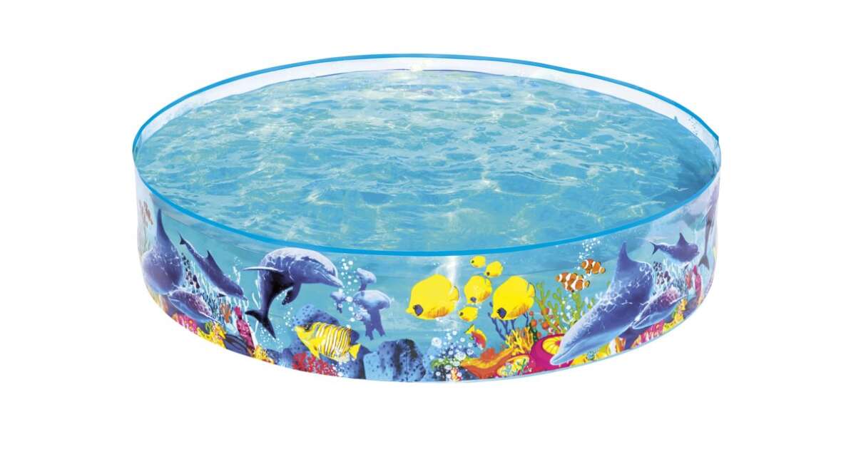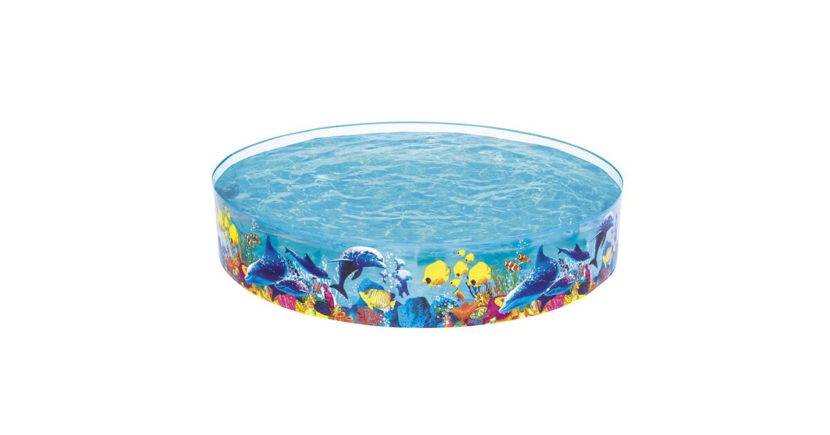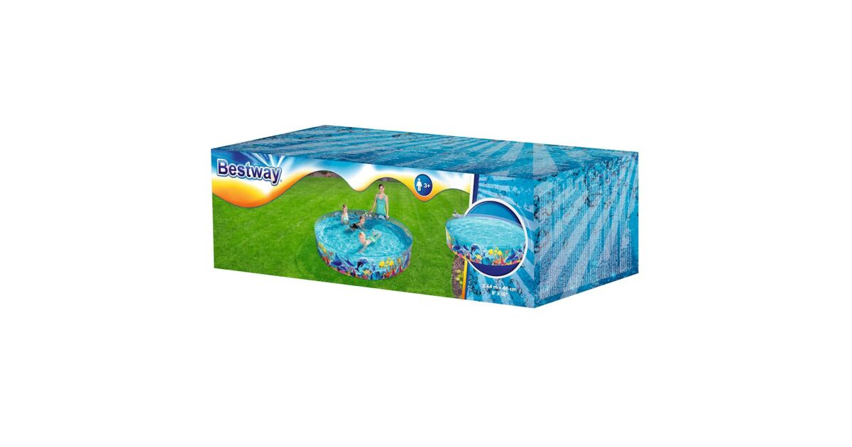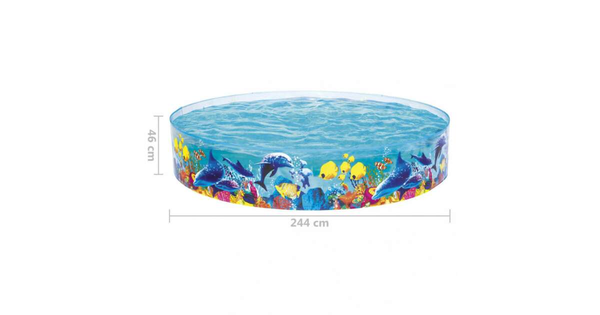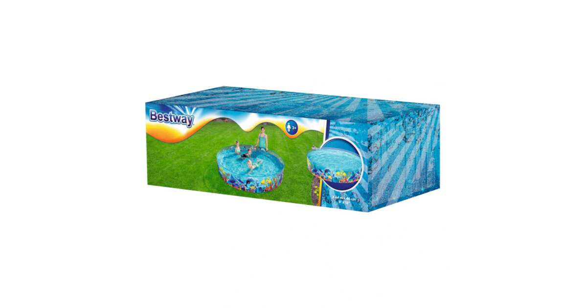 Ten basen Bestway o średnicy 244 cm to idealny wybór na gorące letnie dni! Basen ozdobiony motywami morskimi stworzy wesołą atmosferę w ogrodzie i zapewni maluchom godziny zabawy. Dzięki łatwemu montażowi, basen można rozłożyć w kilka chwil i od razu napełnić wodą.