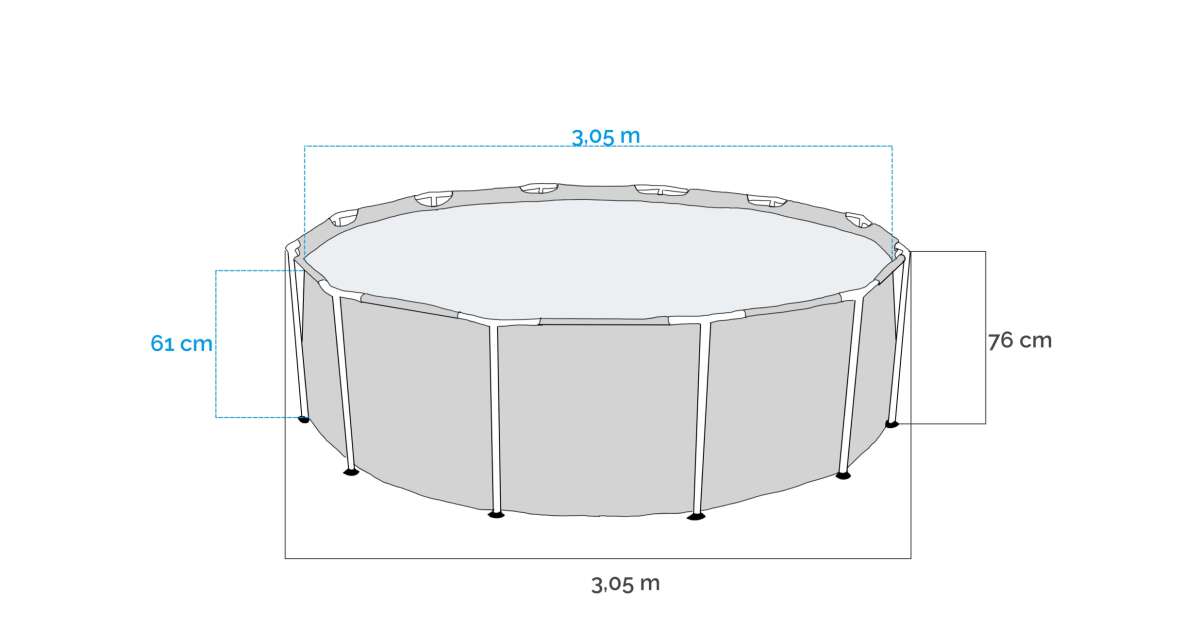 - Idealny rozmiar: Średnica 305 cm, wysokość 76 cm, pojemność 4485 litrów