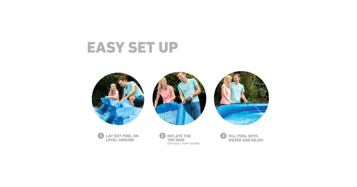 Ciesz się orzeźwieniem w letnie upały dzięki temu przestronnemu i łatwemu w montażu basenowi Intex Easy Set! Spędzaj miłe chwile w wodzie z rodziną i przyjaciółmi. Basen wykonany z wytrzymałego materiału PVC ma nadmuchiwany górny pierścień, dzięki czemu jest gotowy do użycia w mgnieniu oka. Wbudowany system filtracji dba o czystą wodę.