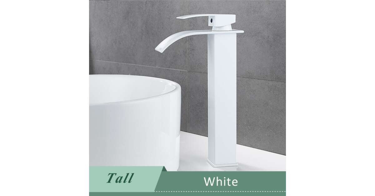 Bateria do zlewu łazienkowego, Blackswan, typ M161, model biały matowy z baterią wodospadową, rozmiar 25 cm