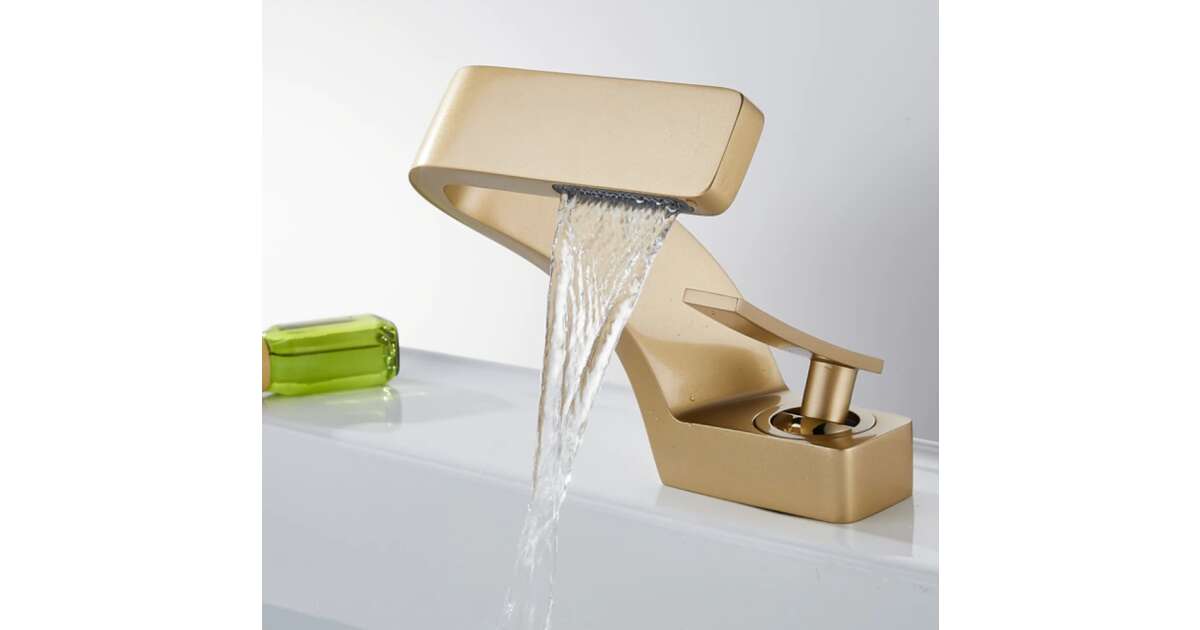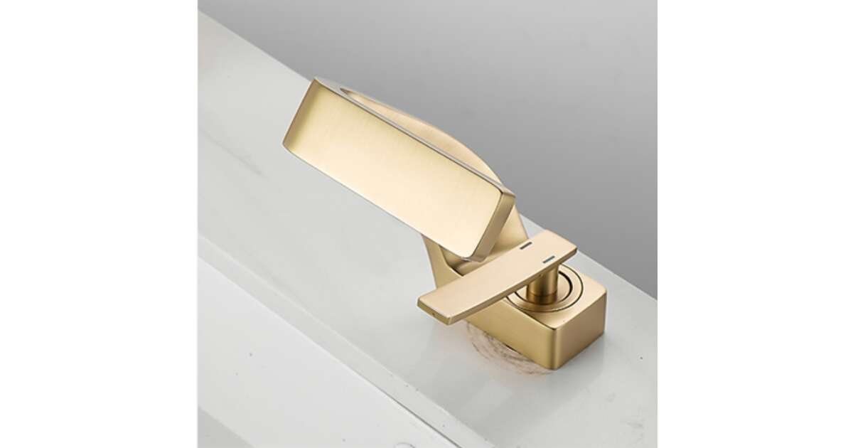 Bateria do zlewu łazienkowego, Blackswan, typ M206, model w kolorze matowego złota z baterią wodospadową, rozmiar 15 cm