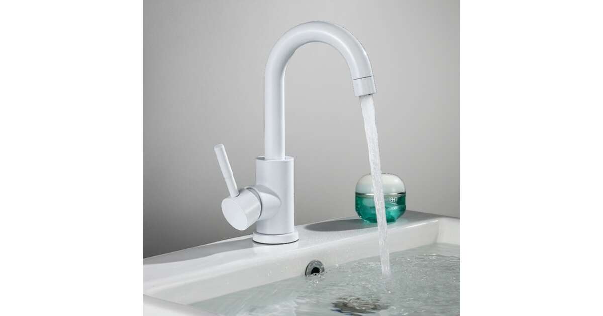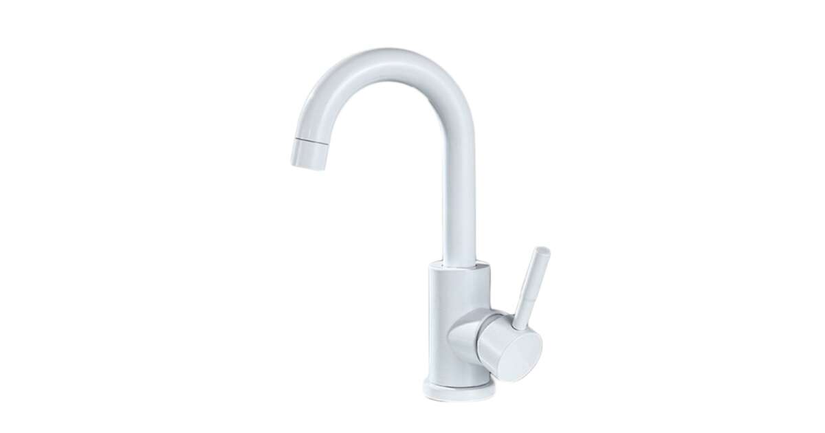 Bateria do zlewu łazienkowego, Blackswan, typ M238, biały okrągły model, rozmiar 23,5 cm opis