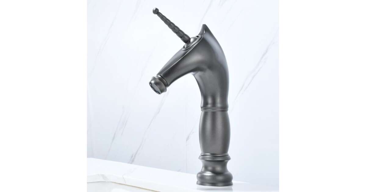 Ta magiczna, bateria umywalkowa w kształcie jednorożca ożywi nie tylko łazienkę w pokoju dziecięcym, ale każdą łazienkę! Średnio szary kolor jest elegancki i ponadczasowy.
