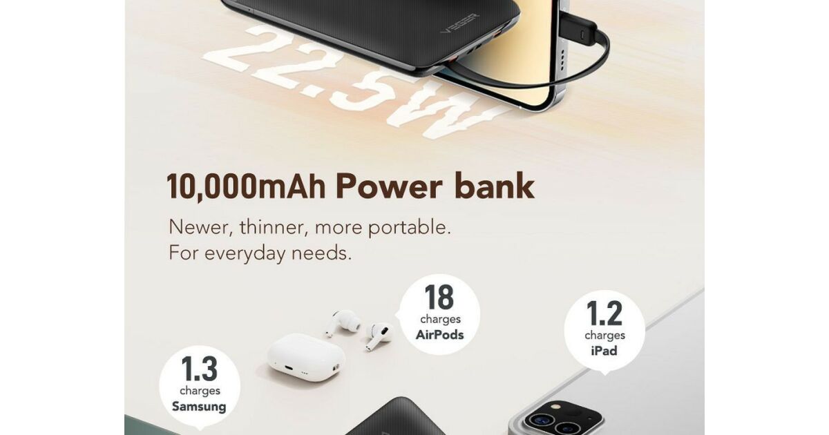 VEGER C11 10000mAh Power Bank: With Built-in Cables, Fast Charging ⚡️