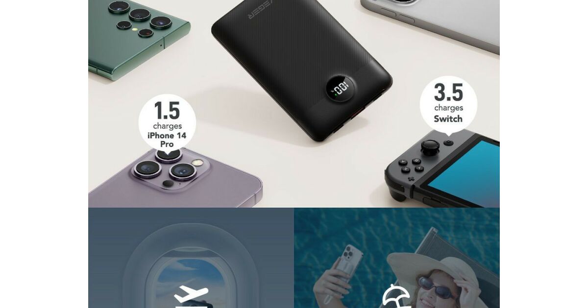 | Ports | USB-A (22.5W output), USB-C (18W input), Lightning (18W input) |