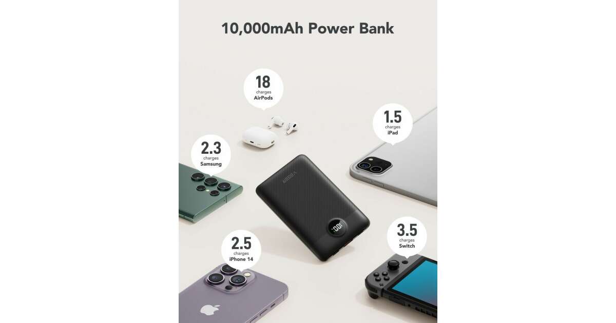 - 10000mAh Capacity: Multiple charges for your phone, tablet, or other devices.