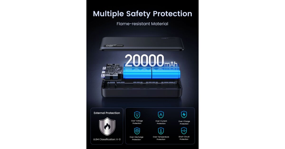 - Pojemność 20000mAh: Wiele cykli ładowania dla Twojego telefonu i innych urządzeń.