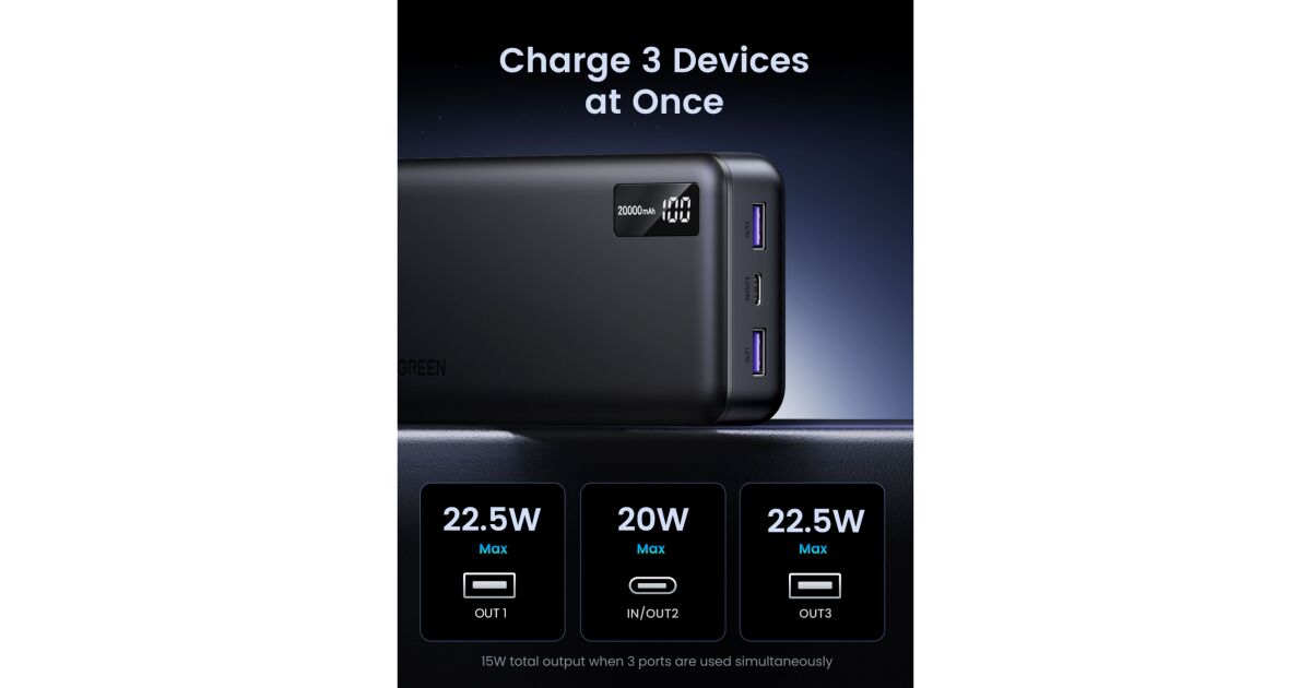Powerbank Ugreen 20000mAh: Szybkie ładowanie, duża pojemność ⚡