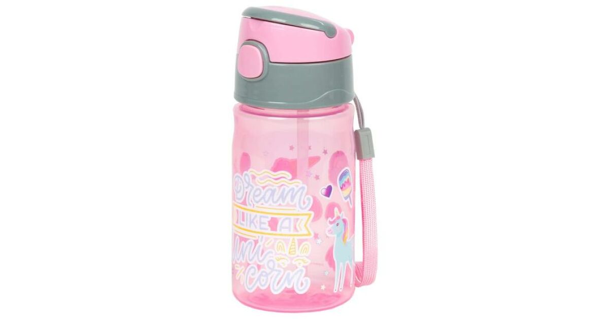 Ten wesoły bidon z jednorożcem to idealny wybór dla małych dziewczynek! Ergonomiczny kształt sprawia, że wygodnie się go trzyma, a wbudowana słomka ułatwia picie. Bezpieczne, szczelne zamknięcie zapobiega wyciekaniu, dzięki czemu torba pozostaje sucha. Bidon posiada również regulowany pasek, dzięki czemu dziecko może zawiesić go na szyi.