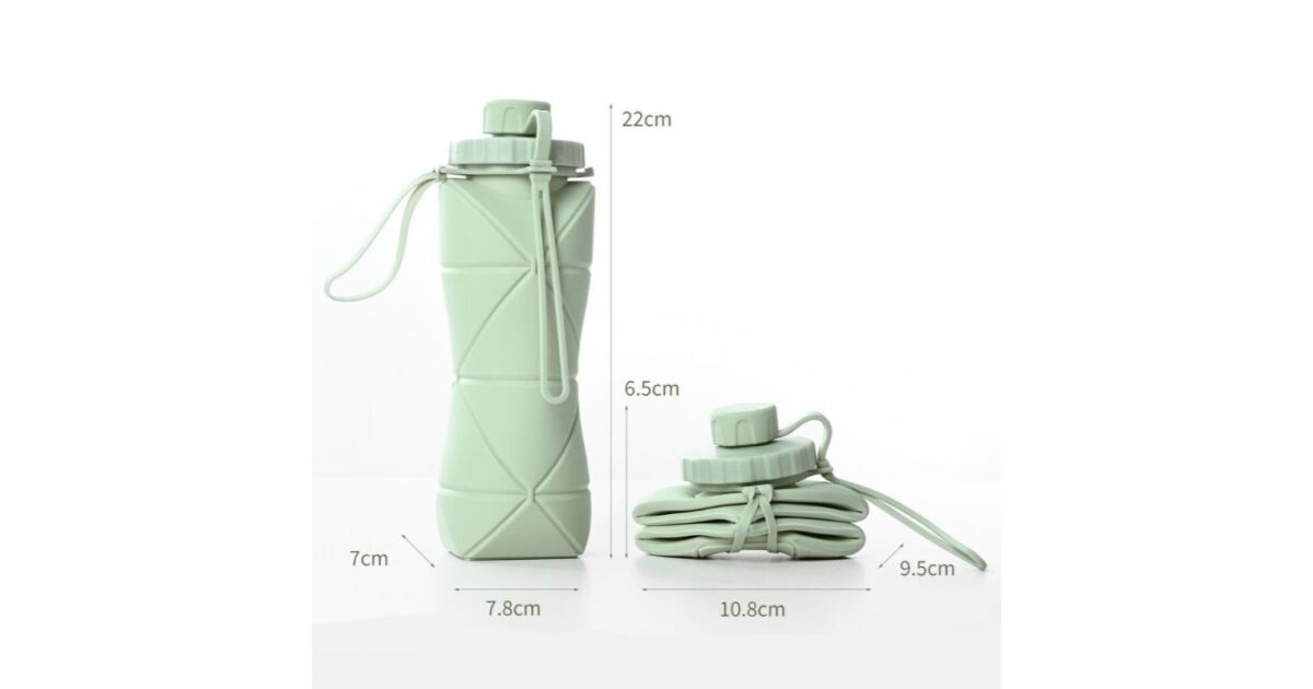 - 1 składana butelka silikonowa o pojemności 600 ml