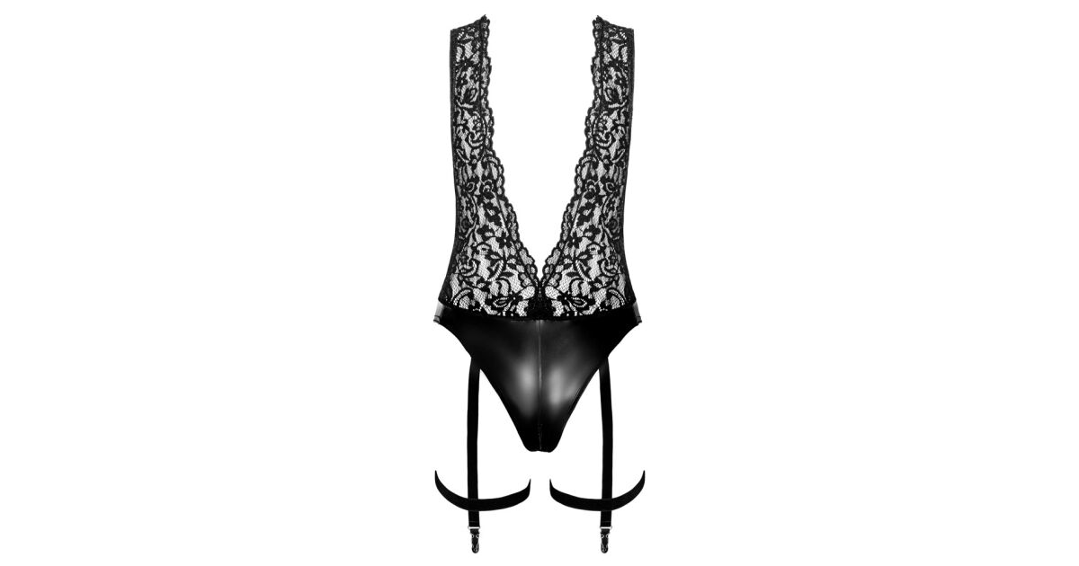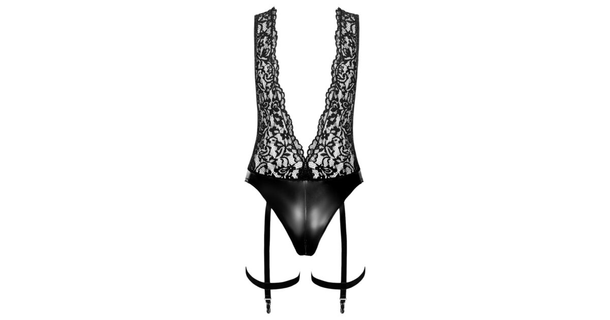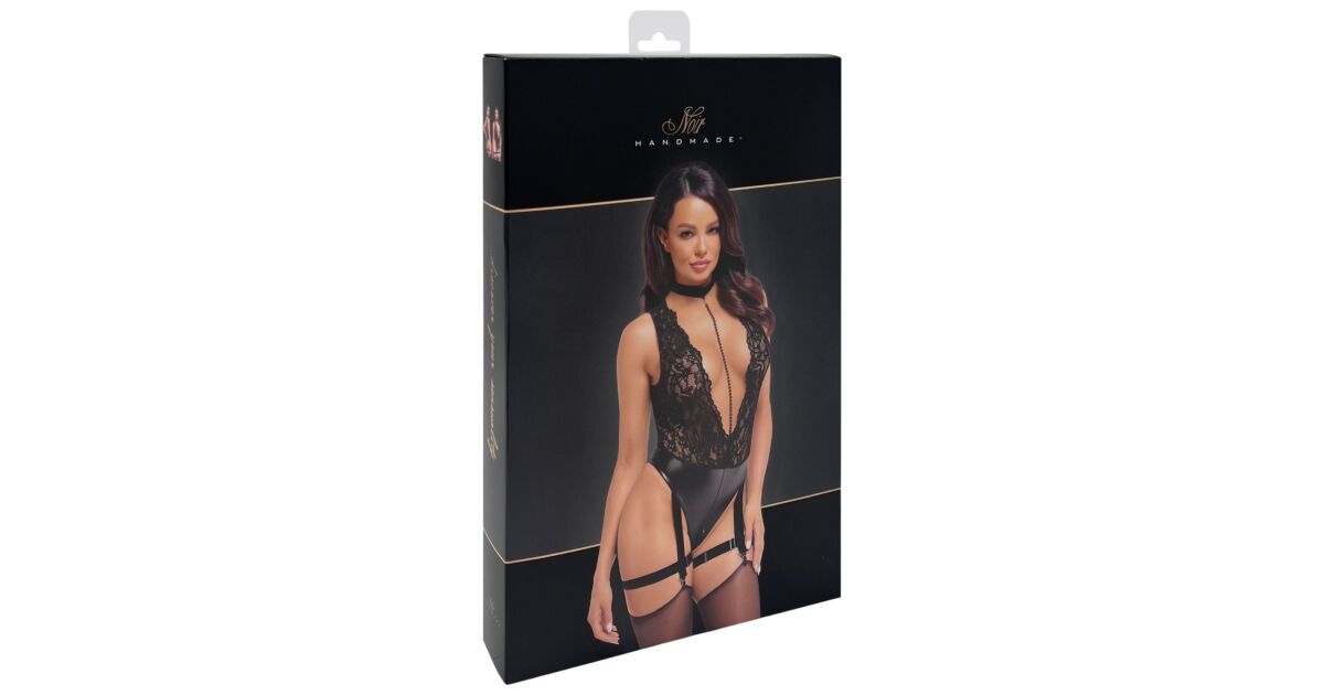 Noir Handmade F297 Libido Deep-V bodysuit with collar, pearl chain and garter L recenzje
