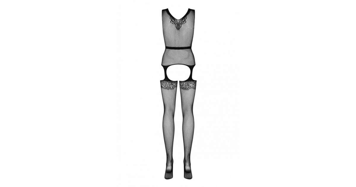 Obsessive Bodystocking F217 S/M/L czarny z kwiatowym wzorem