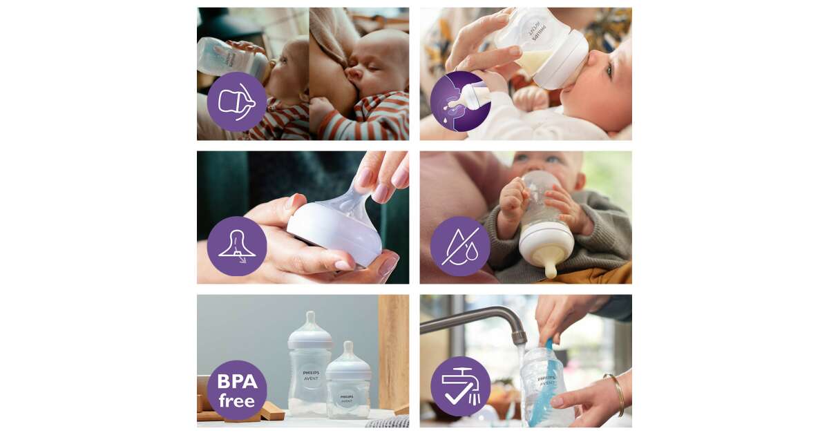 Łatwe przejście z karmienia piersią: Unikalny otwór smoczka Natural Response uwalnia mleko tylko wtedy, gdy dziecko aktywnie pije. Pozwala to na karmienie w naturalnym rytmie i ułatwia łączenie karmienia piersią i butelką. Miękki, elastyczny smoczek imituje kształt i uczucie piersi, dzięki czemu dziecko wygodnie je.