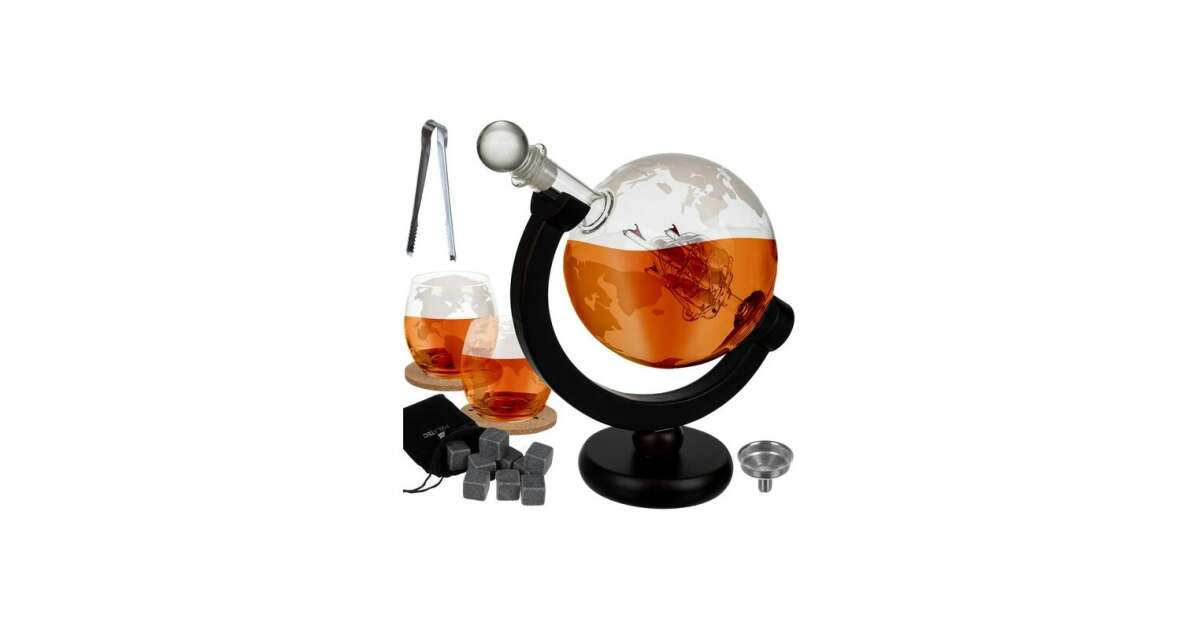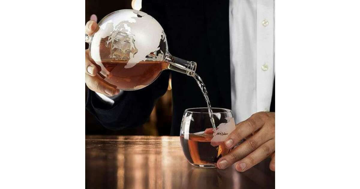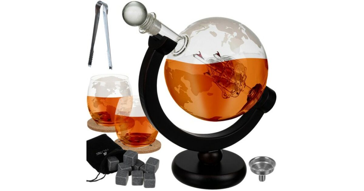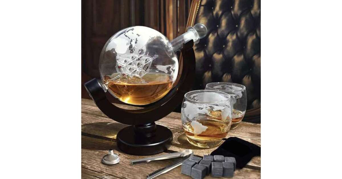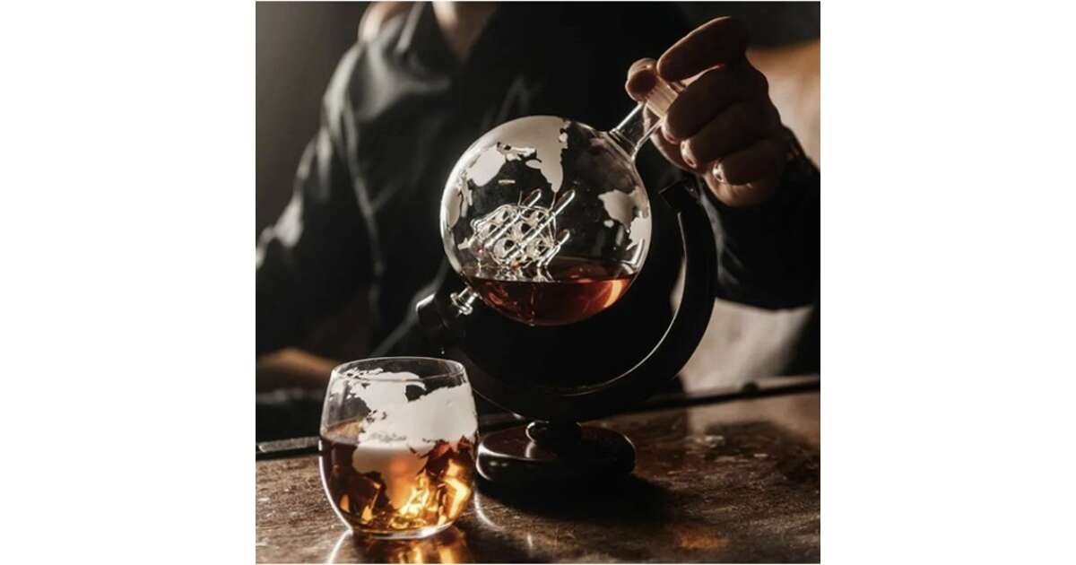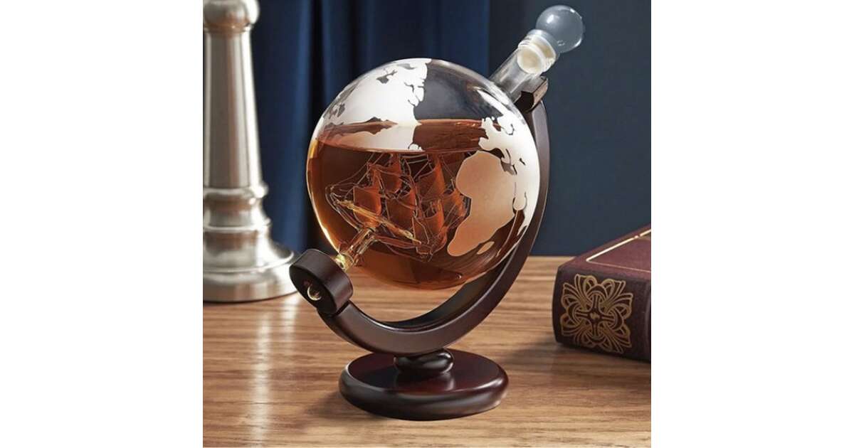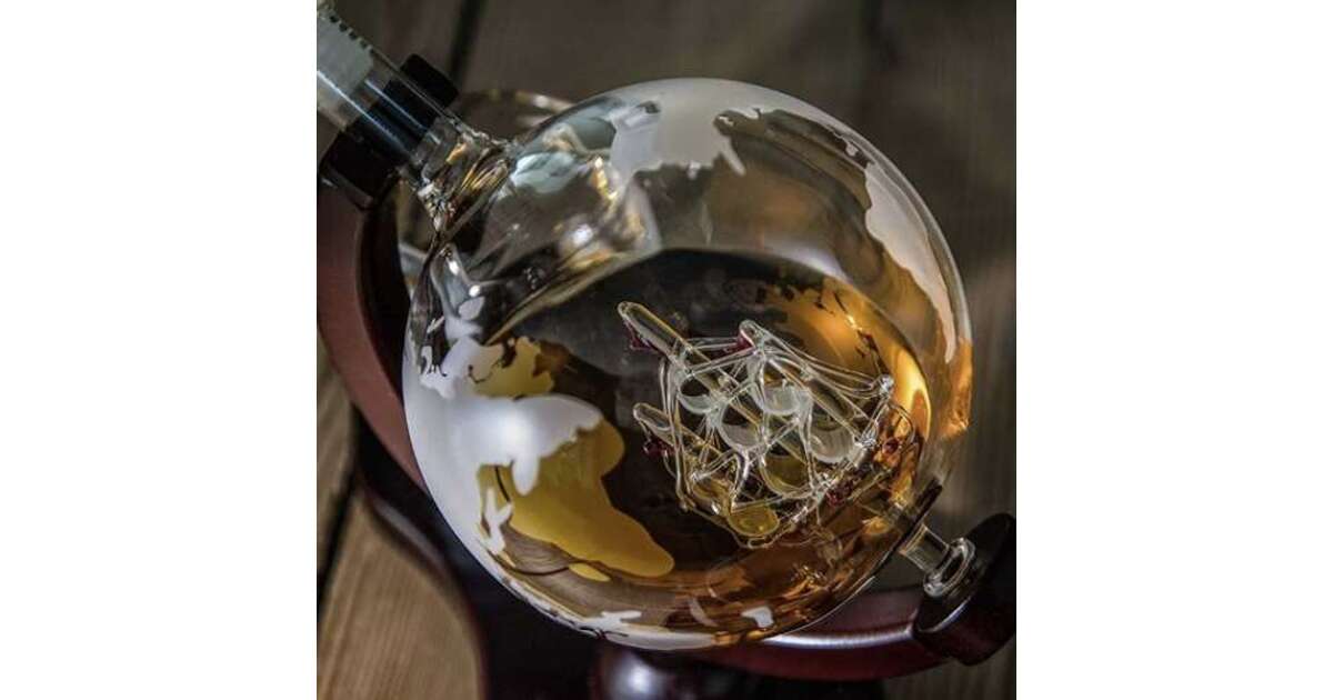 - Karafka w kształcie globu: Unikalny design z wbudowanym statkiem, który pojawia się, gdy poziom płynu opada. 🚢