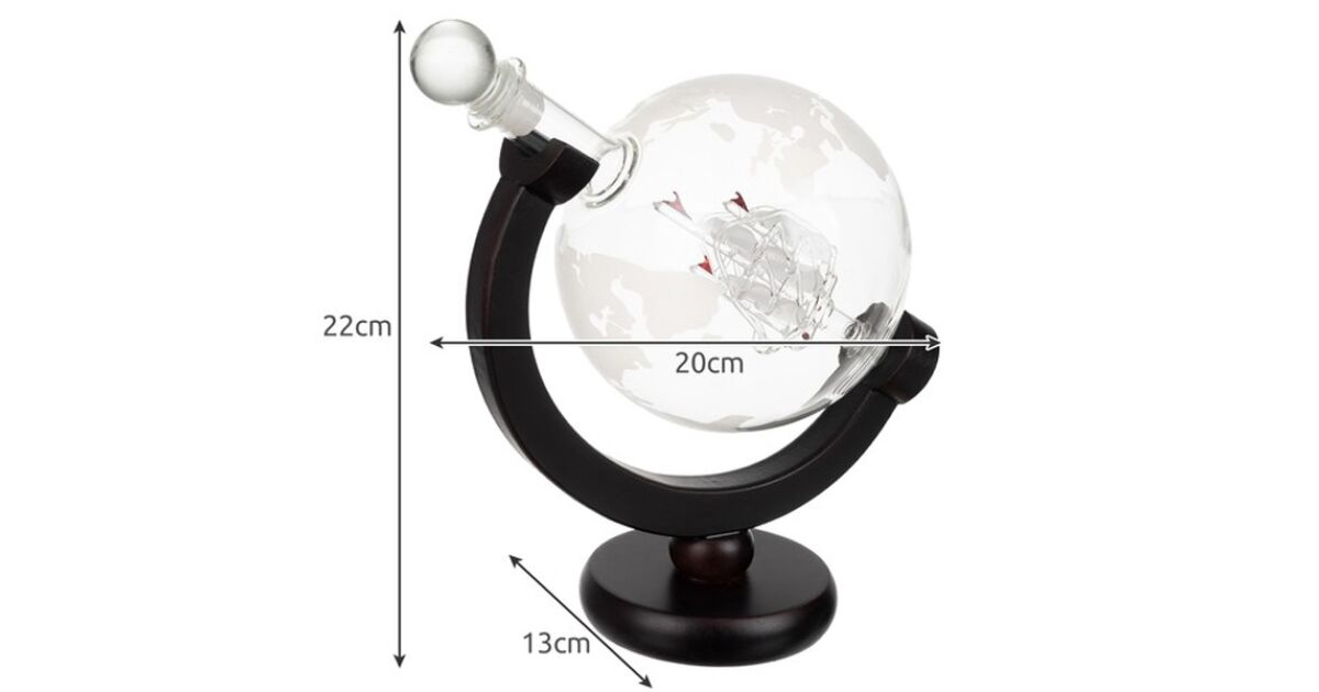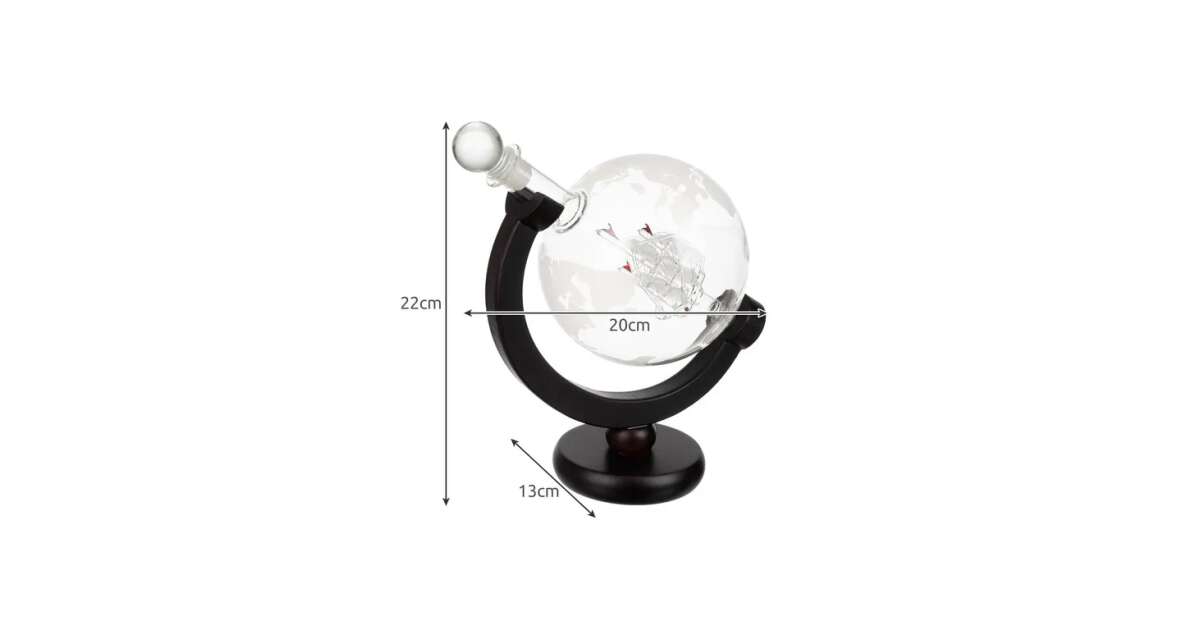 - Półokrągła drewniana podstawka: Zapewnia stabilne podparcie dla karafki w kształcie globu. 🪵