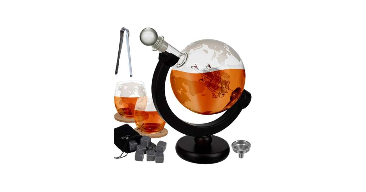 Ten oszałamiający zestaw do whisky to idealny prezent dla każdego miłośnika whisky, a nawet dla Ciebie, jeśli chcesz dodać odrobinę luksusu do swojej codzienności. Karafka w kształcie globu i pasujące do niej szklanki są nie tylko funkcjonalne, ale stanowią również prawdziwe elementy dekoracyjne, które ożywią każdy salon. Zestaw zawiera wszystko, czego potrzebujesz, aby cieszyć się przyjemnymi doznaniami podczas picia whisky.