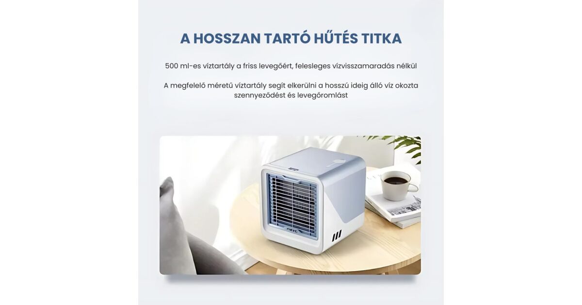 Ciesz się przyjemnym, chłodnym powietrzem gdziekolwiek jesteś! Ten kompaktowy mini klimatyzer wentylator nie tylko chłodzi, ale także nawilża powietrze, dbając o Twój komfort.