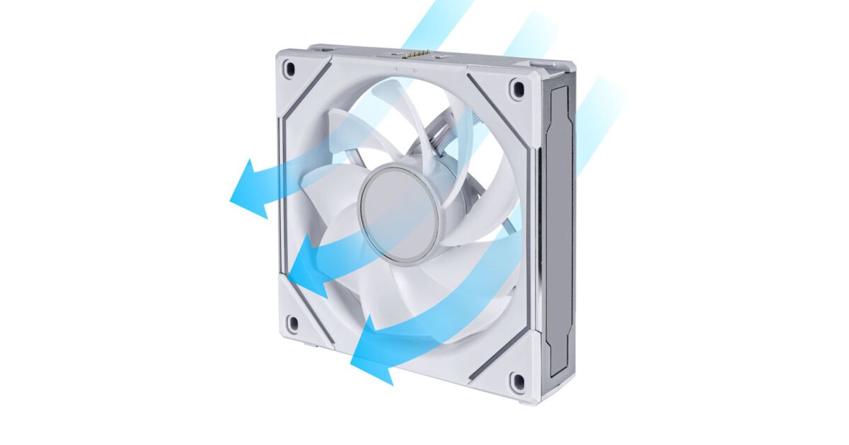 Lian Li UF-RSLIN120-1W. Model: Wentylator, Średnica czaszy wentylatora: 12 cm, Prędkość obrotowa (min): 220 RPM, Prędkość obrotowa (max): 2100 RPM, Maksymalne ciśnienie powietrza: 2,02 mmH2O, Typ łożyska: Łożysko dynamiki płynów (FDB). Kolor produktu: Biały