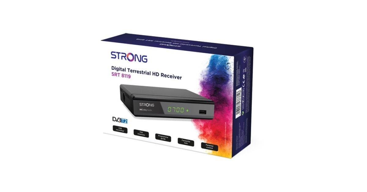Naziemny cyfrowy odbiornik HD SRT8119 do odbioru niekodowanych programów w jakości HD. Pojemność pamięci 700 kanałów. Funkcja nagrywania. Obsługa standardu H.265 i odtwarzanie plików przez port USB. Elektroniczny przewodnik po programach (EPG), zarządzanie ograniczeniami wiekowymi, lista ulubionych i szereg funkcji edycji kanałów.