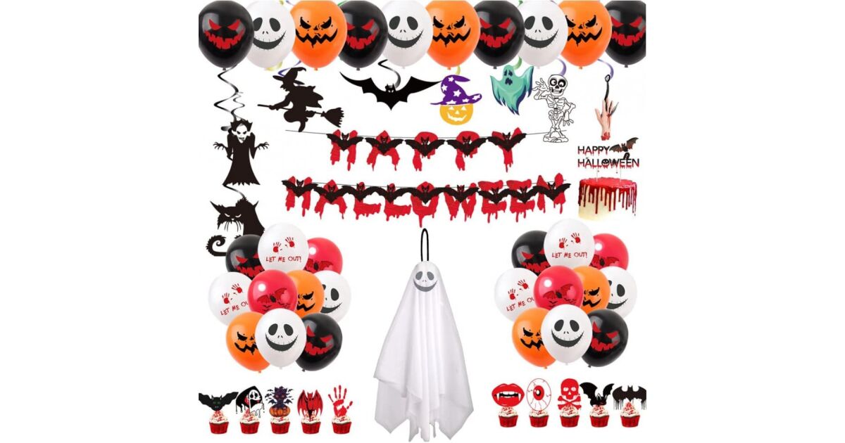 Ten 53-elementowy zestaw dekoracji na Halloween to idealny wybór, aby stworzyć upiorną, świąteczną atmosferę! Balony, girlandy i dekoracje ozdobione różnymi motywami halloweenowymi sprawią, że Twoja impreza będzie naprawdę niezapomniana.
