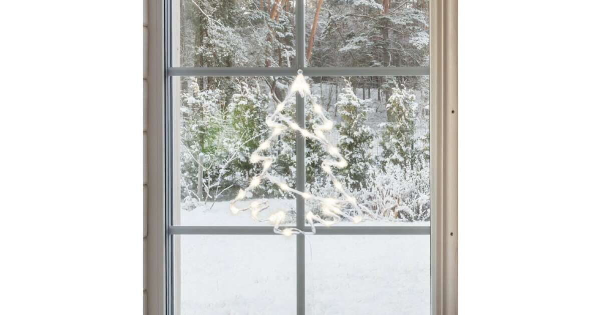 Stwórz świąteczny nastrój w swoim domu dzięki temu pięknemu, 33 x 28 cm girlandowi w kształcie choinki z LED-ami! Idealna ozdoba do okna, z 35 ciepłymi białymi LED-ami, dającymi przyjemne, świąteczne światło.