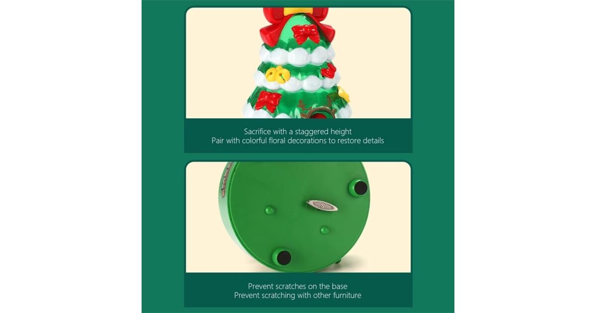 - Mechanizm grający: Wbudowany mechanizm grający zapewnia radosną świąteczną melodię.