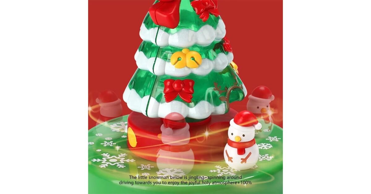 Wprowadź magiczną atmosferę świąt dzięki tej uroczej, obrotowej i świecącej pozytywce w kształcie choinki! 🎄🎁