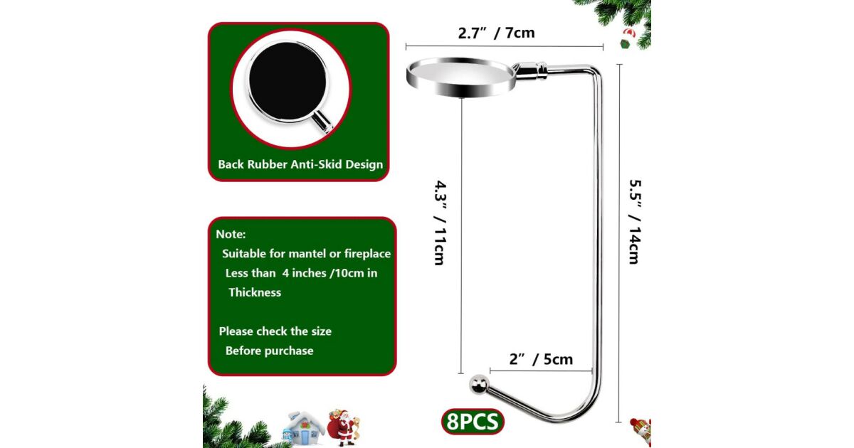 8 szt. Antypoślizgowych haczyków na pończochy świąteczne - idealne do dekoracji świątecznych 🎄
