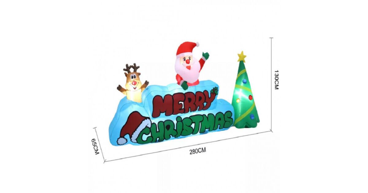 Gigantyczna nadmuchiwana dekoracja świąteczna w kształcie Świętego Mikołaja ze światłem LED, 280×130 cm