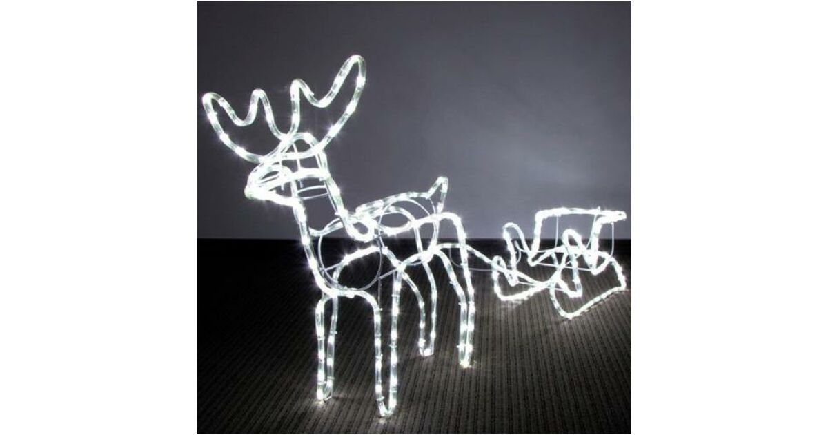 Wprowadź świąteczny nastrój do swojego domu dzięki temu pięknemu, zimnemu białemu reniferowi LED z saniami! Idealny wybór do dekoracji zarówno zewnętrznych, jak i wewnętrznych.