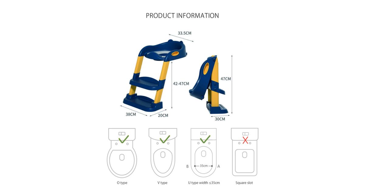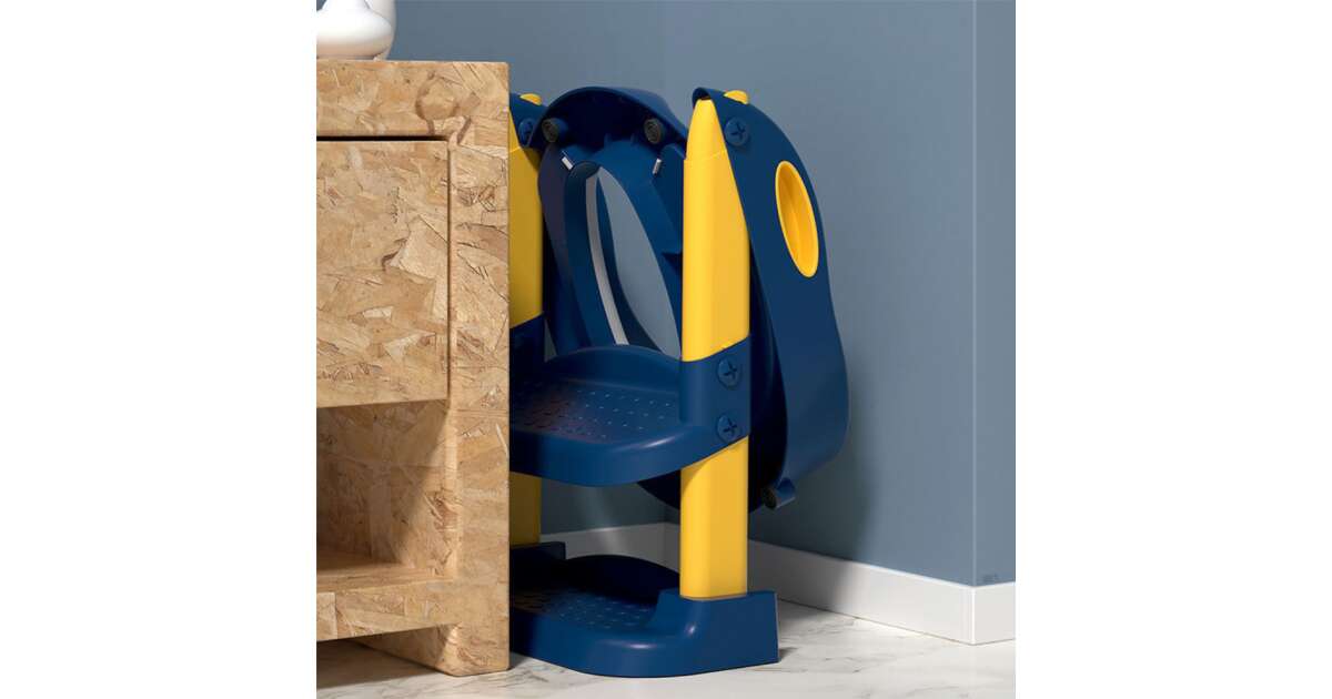 Reduktor do WC dla dzieci z drabinką, Linomag®, Przyjemny, 38 x 40 x 47 cm, Niebieski / Żółty opis
