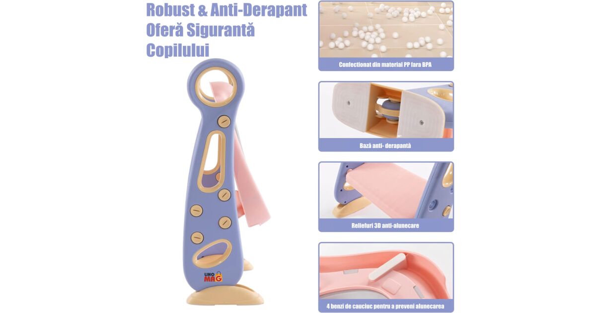 - Regulowana wysokość: Posiada dwa poziomy wysokości, dzięki czemu łatwo dopasujesz go do wzrostu dziecka. Nóżki nie zwisają, zapewniając stabilność. ✅