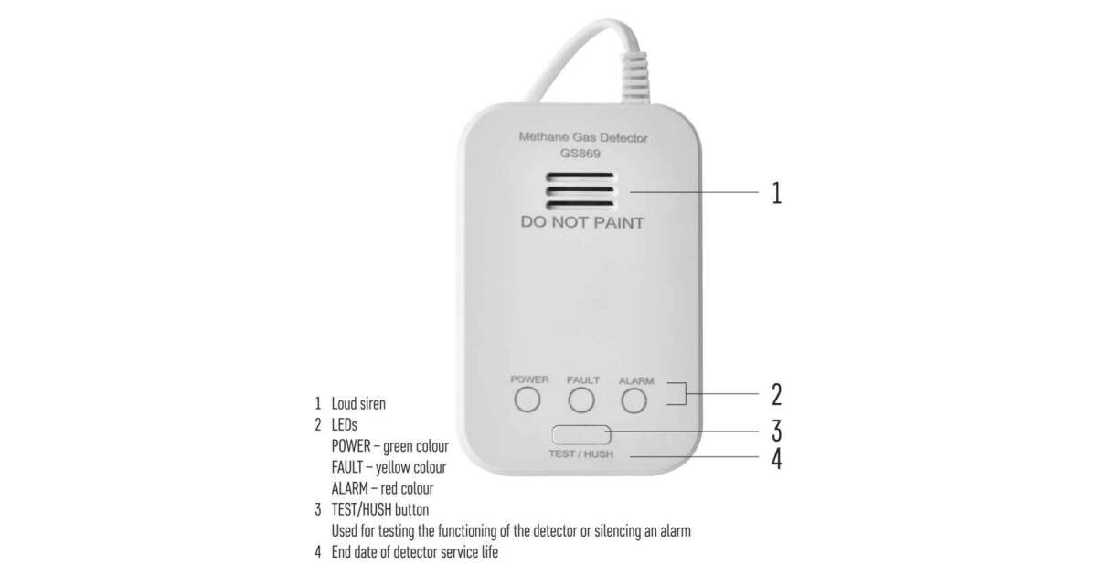 Urządzenie stale monitoruje powietrze, a w przypadku wykrycia wycieku gazu sygnalizuje zagrożenie głośną syreną i migającymi diodami LED. Przyciskiem TEST/HUSH możesz w dowolnym momencie sprawdzić działanie urządzenia.