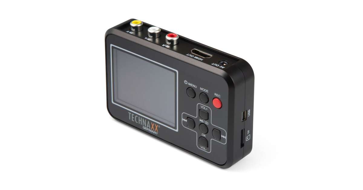 .flex-container {display: flex; padding: 3%;} .flex-item {flex: 1; padding: 2%;} .content-image {max-width: 100%;height: auto;} Maszyna do konwersji wideo retro FHD/VGA/QVGA 2.4'' TX-182 Maszyna do konwersji wideo retro FHD TX-182 Konwertuje analogowe wideo z Video8, Hi8 SVHS, VHS, VCD,DVD, VCR, DV Wyświetlacz o przekątnej 2,4 (6cm) do oglądania nagrań na maszynie do konwersji wideo Zapisuje filmy bezpośrednio na karcie MicroSD do 32GB Wbudowana bateria (nagrania do 4 godzin) Konwertuje materiał wideo o maks. rozmiarze pliku 9 minut Przywraca i udostępnia rodzinne wspomnienia z dawnych czasów Obsługuje jakość konwersji VGA lub QVGA Wbudowany głośnik (mono) Obsługuje wejście kompozytowe (RCA) i wyjście HDMI, AV Zabezpieczenia / filtry: Nie Kolor: Czarny Napięcie wejściowe (min.): 100 V Napięcie wejściowe (maks.): 240 V Napięcie wyjściowe (min.): 5 V Akcesoria w zestawie: Maszyna do konwersji wideo retro FHD TX-182, Adapter zasilania USB, Kabel RCA, Kabel AV, Kabel HDMI, Kabel MiniUSB do transmisji danych i zasilania, Adapter Scart do RCA, Karta MicroSD 4GB, Płyta CD z instrukcją obsługi Wymiary: 10,5 x 7,5 x 2,5 cm Waga: 114 g Typ akcesorium: Pozostałe