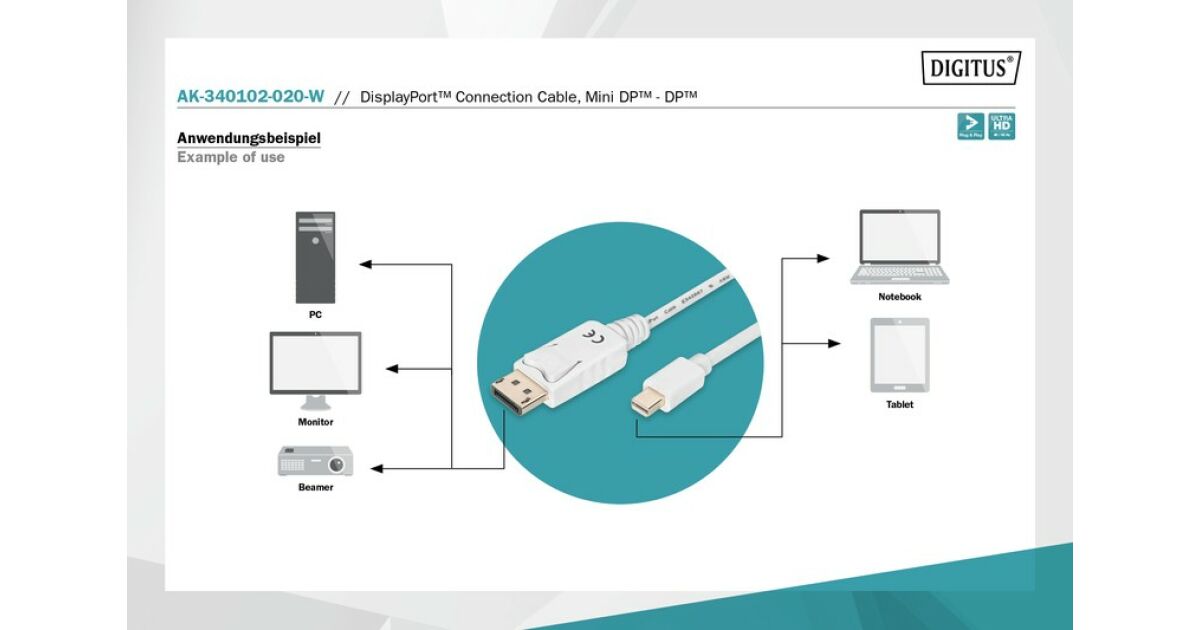 DIGITUS Mini DP - DP M/M 2 m 2m /s1x DisplayPort 1x Mini DisplayPort recenzje