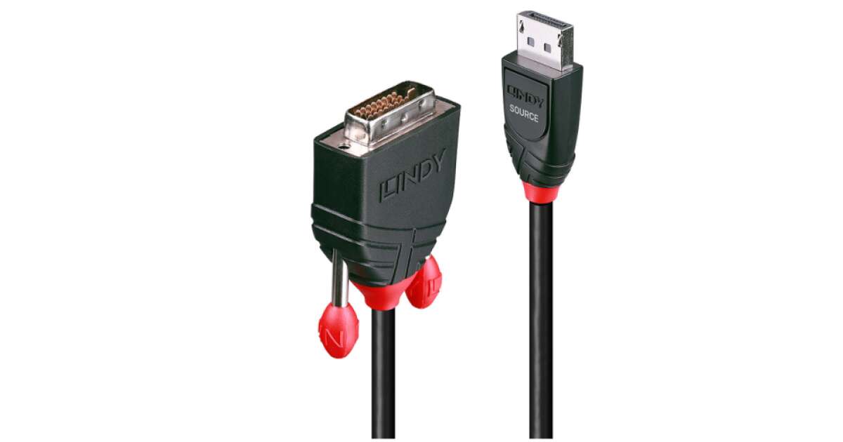 Kabel LINDY Display Connector / DVI Connector [1x wtyczka DisplayPort - 1x wtyczka DVI, 24+1 pin] 2,00 m Czarny opis