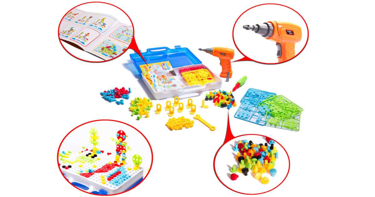 Zestaw śrubokrętów zabawkowych dla dzieci 237 elementów, wiertarka, śruby, klocki