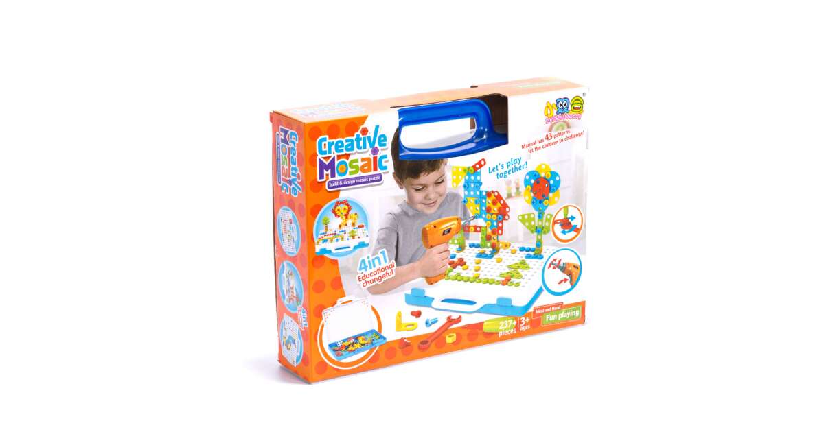 Zestaw śrubokrętów zabawkowych dla dzieci 237 elementów, wiertarka, śruby, klocki opis