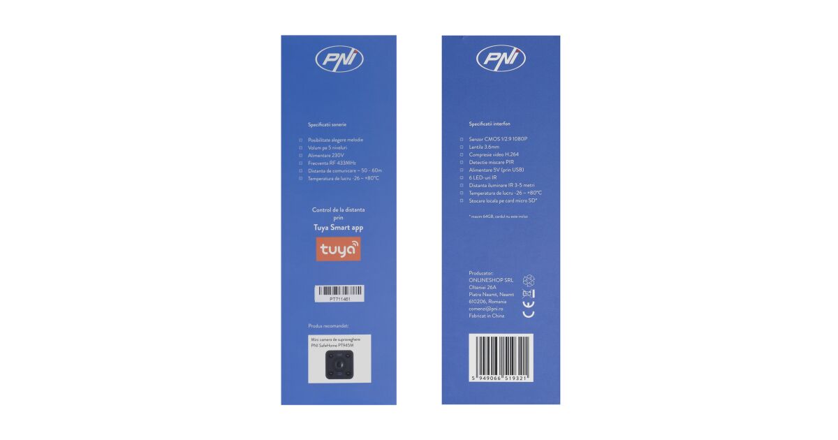 Inteligentny wideodomofon PNI SafeHome PT710B WiFi HD, P2P, akumulator, dedykowana aplikacja Tuya Smart, integracja ze scenariuszami i inteligentnymi automatyzacjami z innymi produktami kompatybilnymi z Tuya 🏠