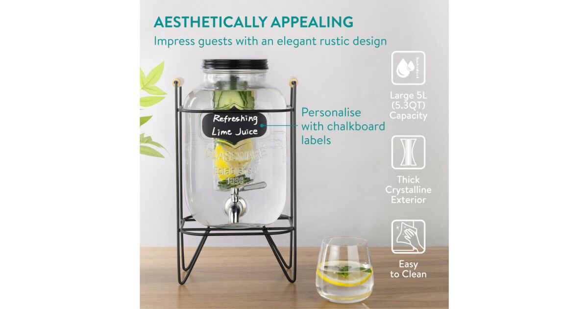 5-litrowy szklany dozownik do napojów: idealny na imprezy i wydarzenia! 🍹