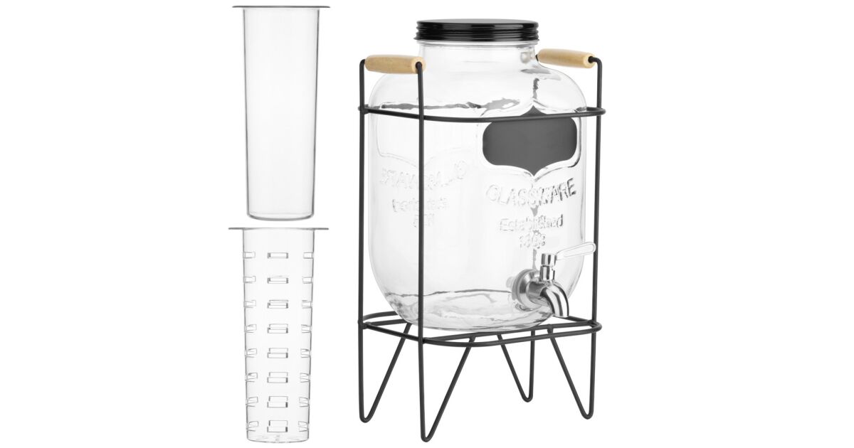 Ten stylowy i praktyczny 5-litrowy szklany dozownik do napojów to idealny wybór na każdą okazję! Niezależnie od tego, czy jest to impreza, wesele, przyjęcie w ogrodzie, czy spotkanie rodzinne, ten dozownik z pewnością poprawi nastrój. Wykonany z grubego, trwałego szkła pojemnik nadaje elegancki wygląd, a kranik ze stali nierdzewnej zapewnia łatwe i bezpieczne dozowanie napojów.
