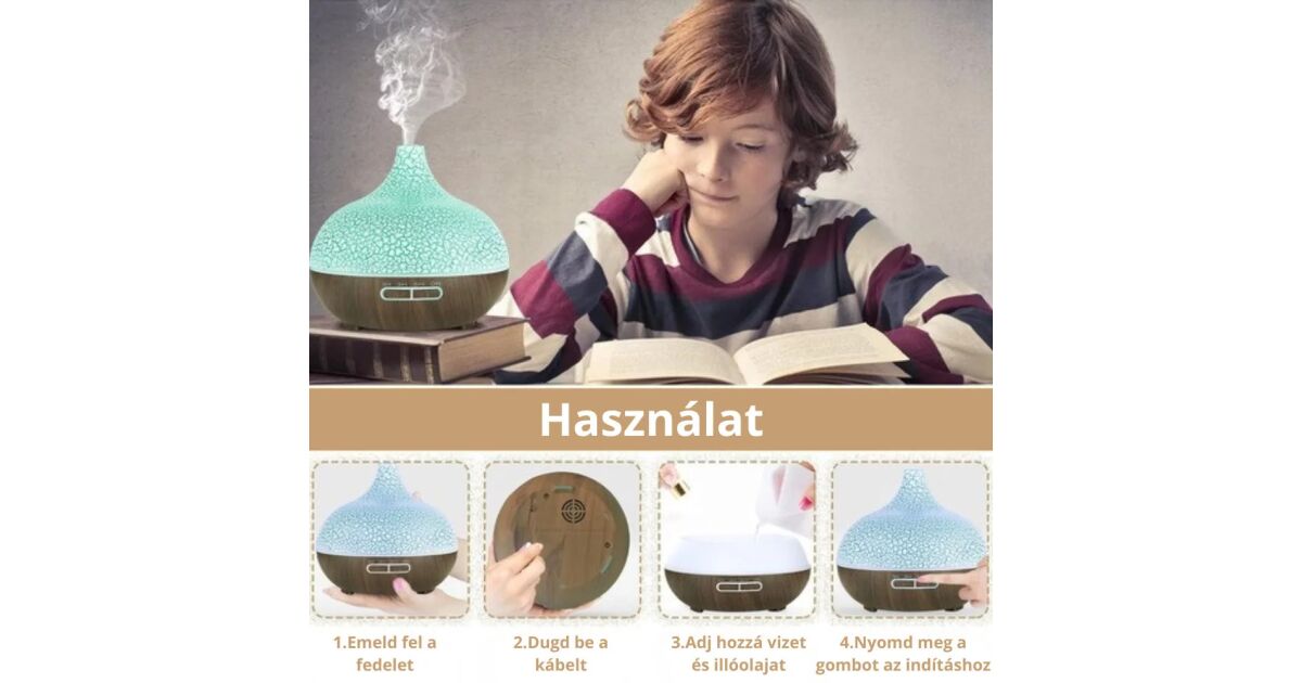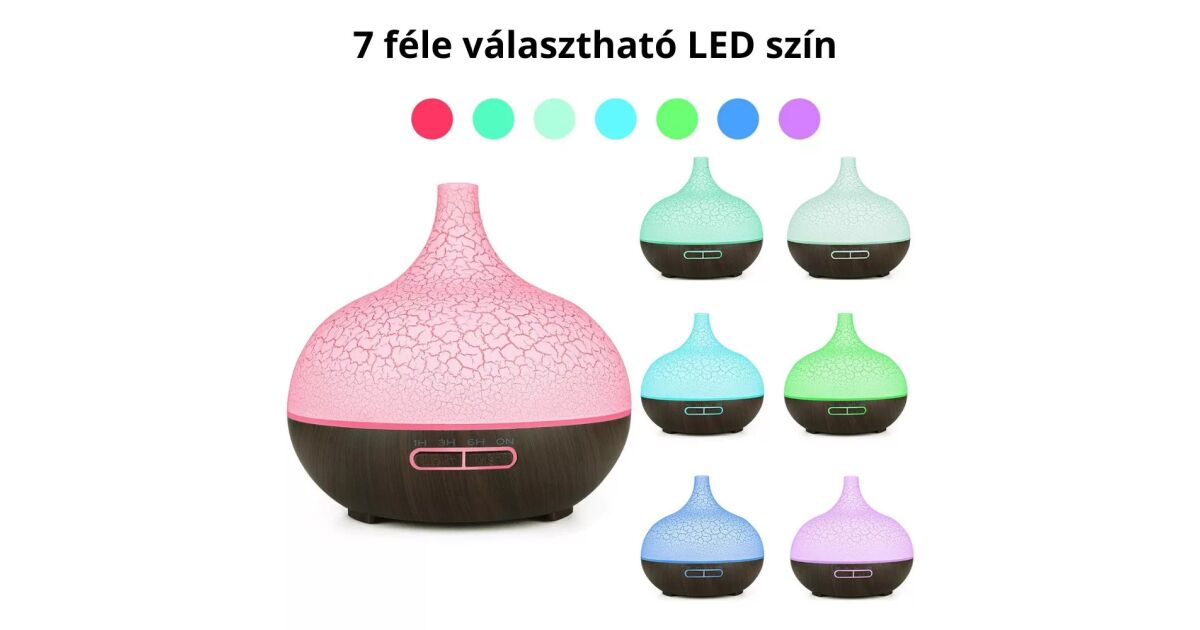 Dyfuzor zapachowy ultradźwiękowy z wzorem popękanego i ciemnego drewna z 7 stronami do wyboru, pilotem zdalnego sterowania i 4-częściowym zestawem olejków eterycznych Pulaiyi opis