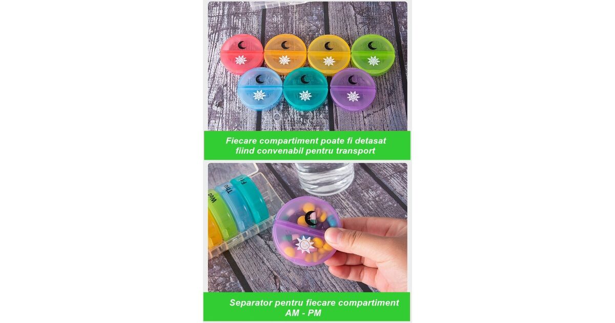 - 🗓️ Idealna organizacja: 7 przegródek na każdy dzień tygodnia z podziałem na rano/wieczór dla łatwego planowania.