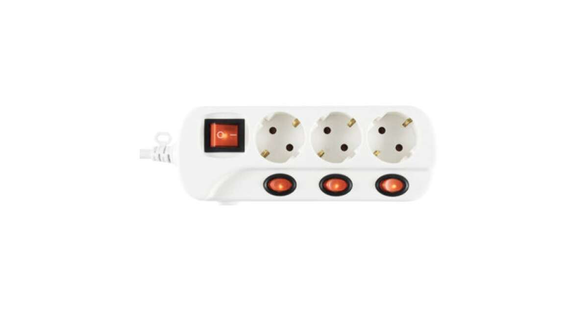 Ten kompaktowy, biały rozgałęziacz to idealne rozwiązanie do wygodnego i bezpiecznego podłączania wielu urządzeń elektrycznych. Każde gniazdko posiada osobny włącznik, dzięki czemu możesz łatwo sterować poszczególnymi urządzeniami, bez konieczności wyciągania ich z gniazdka. Główny włącznik zapewnia całkowite odcięcie zasilania.